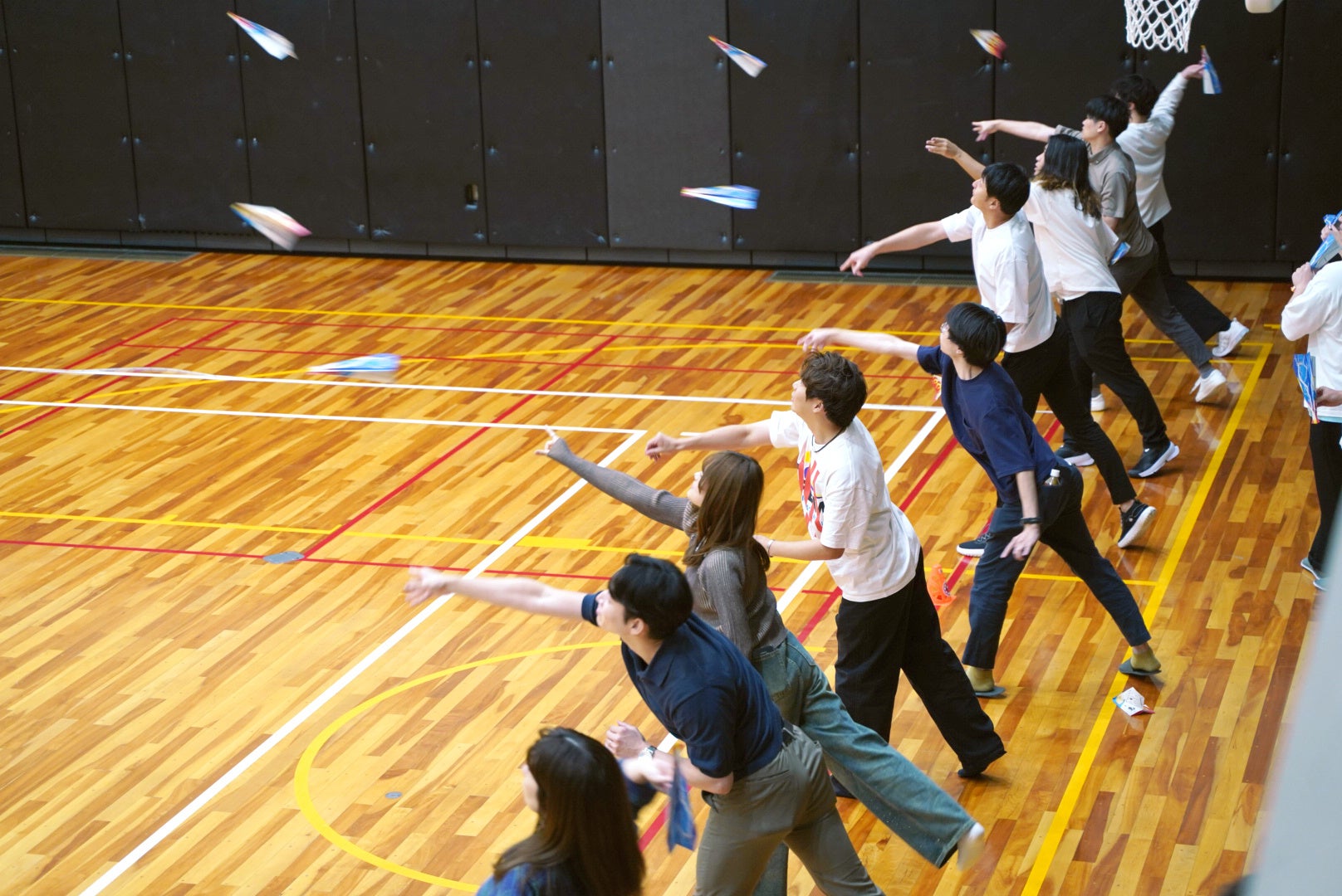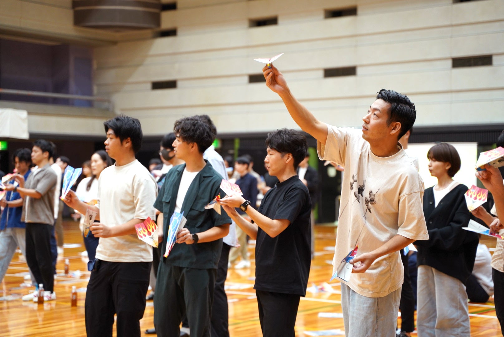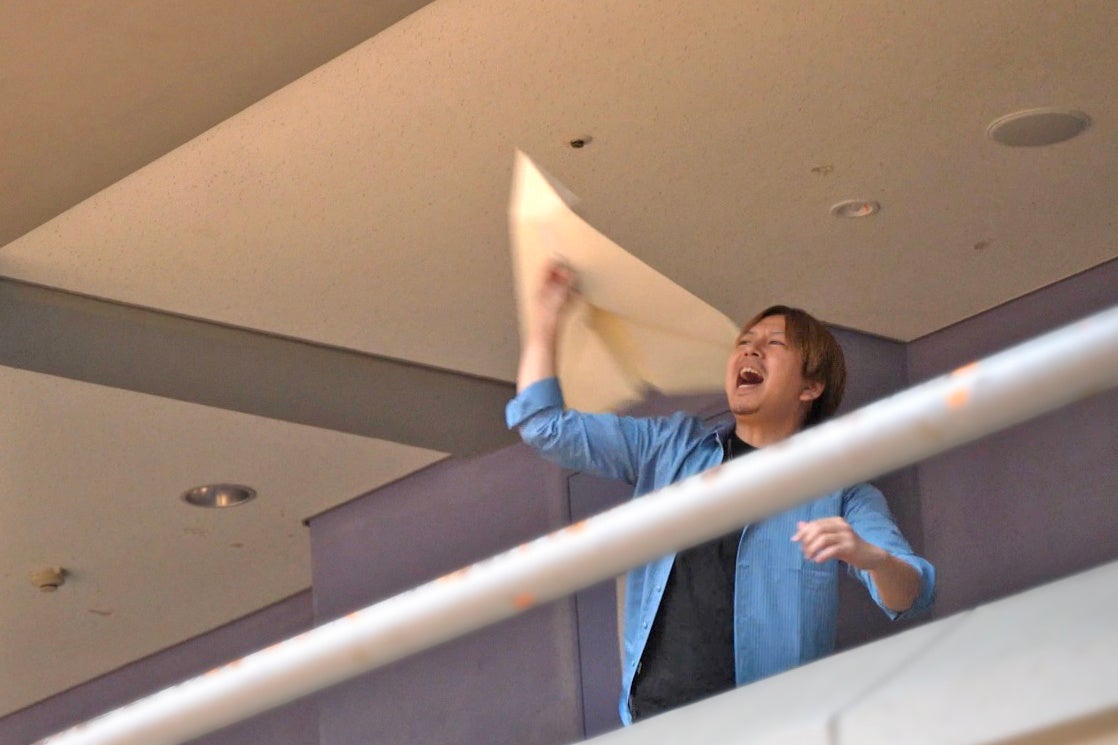 また、表彰式後には代表が2階から巨大紙飛行機を飛ばし、会場を大いに盛り上げながらアクティビティは無事終了いたしました。