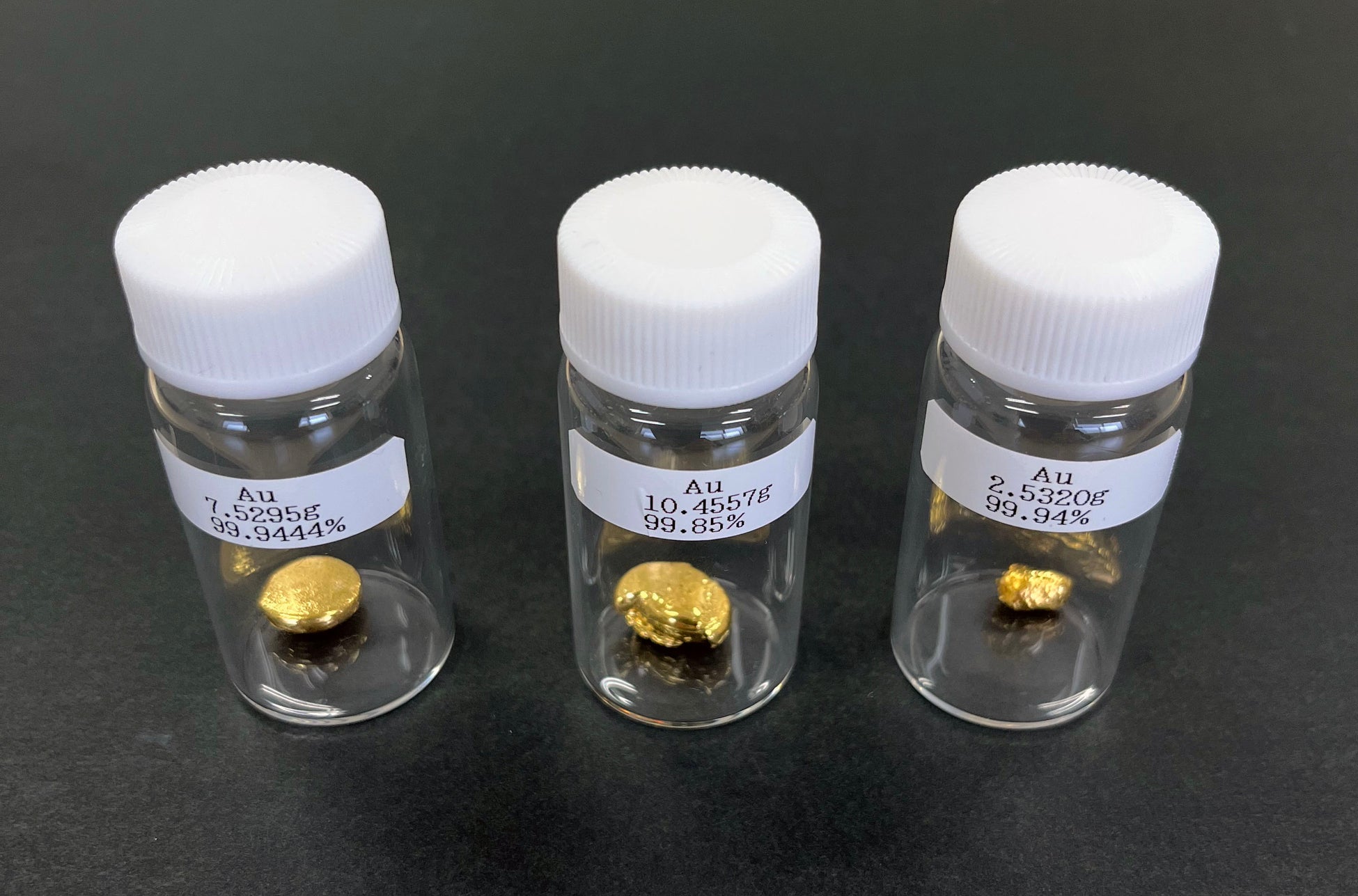 当社グループ傘下のイコールゼロ株式会社(長野県長野市、以下「イコールゼロ」)は、同じくTREグループのリバー株式会社(東京都墨田区、以下「リバー」)熊谷事業所(埼玉県熊谷市)でリサイクル処理された小型家電の基板から、純度99.94%の金抽出に成功しました。