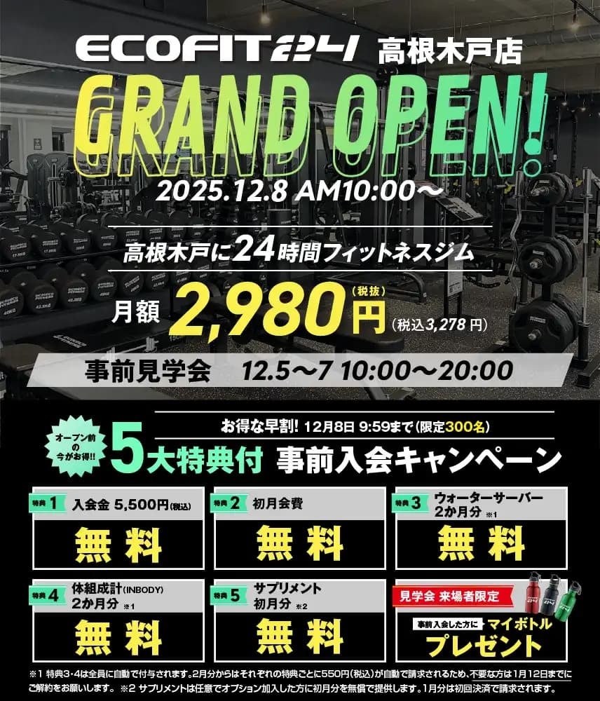 エーイーシー株式会社(本社:愛知県名古屋市、代表取締役:中村康宏)が展開する24時間フィットネスジム「エコフィット24」は、2025年12月8日(月)に「千種葵店」(愛知県名古屋市)と「高根木戸店」(千葉県船橋市)を同時オープンいたします。