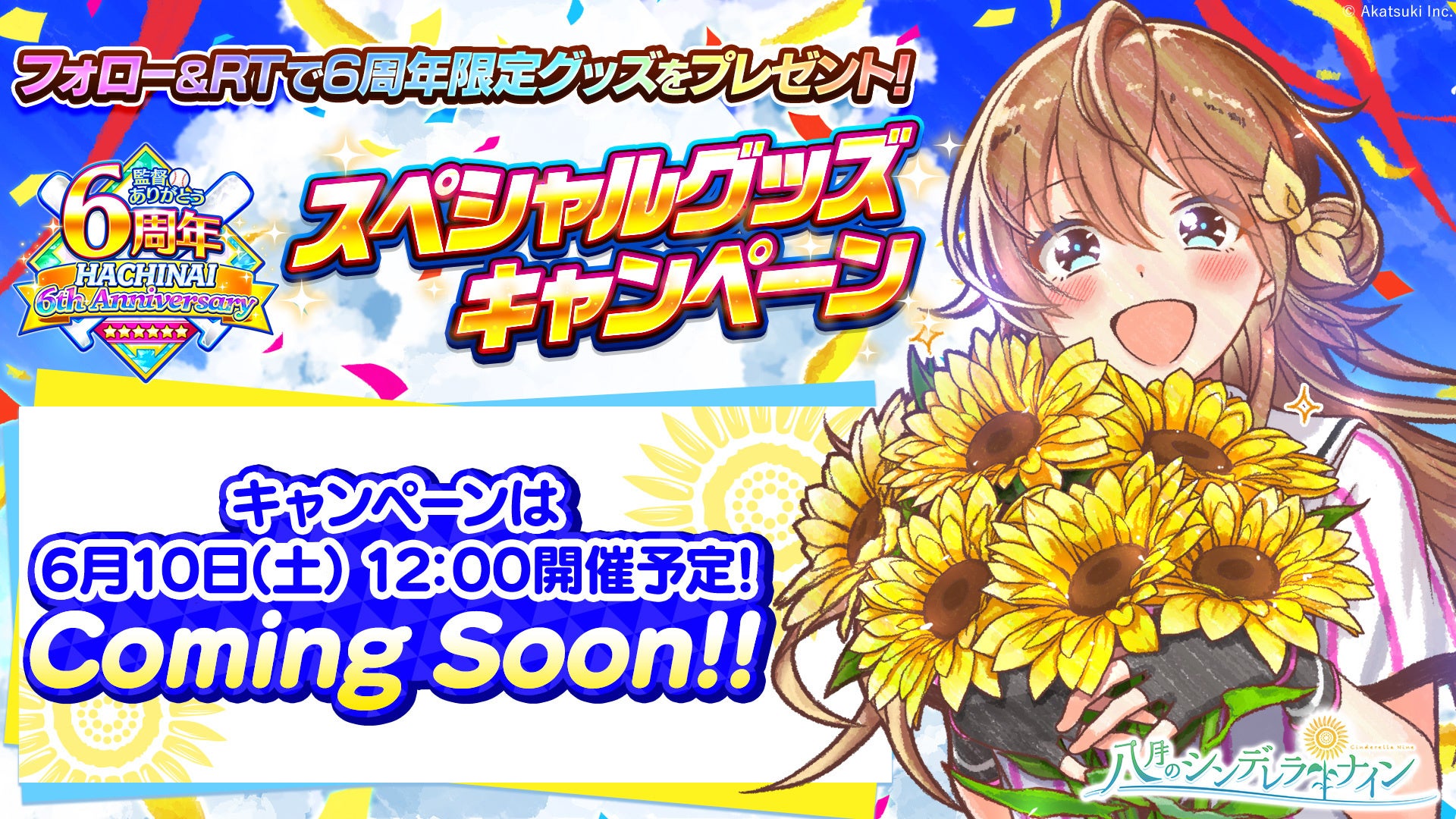 2023年6月10日(土) 12:00よりハチナイ6周年の限定グッズがもらえるフォロー&RTキャンペーンが開催予定です。詳細は、後日6周年特設サイトをご確認ください。