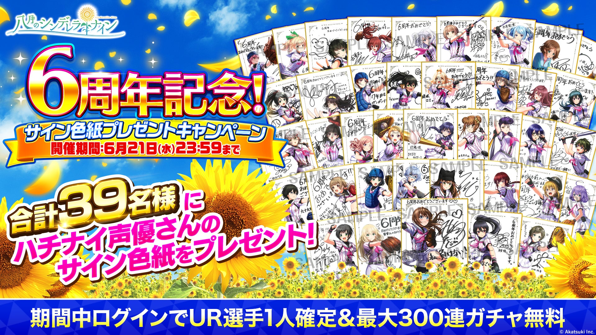 UR選手1名確定&最大300連スカウト無料など6つのキャンペーンでお届け!合計39名にハチナイ声優さんの直筆サインがもらえるTwitterキャンペーン実施中
