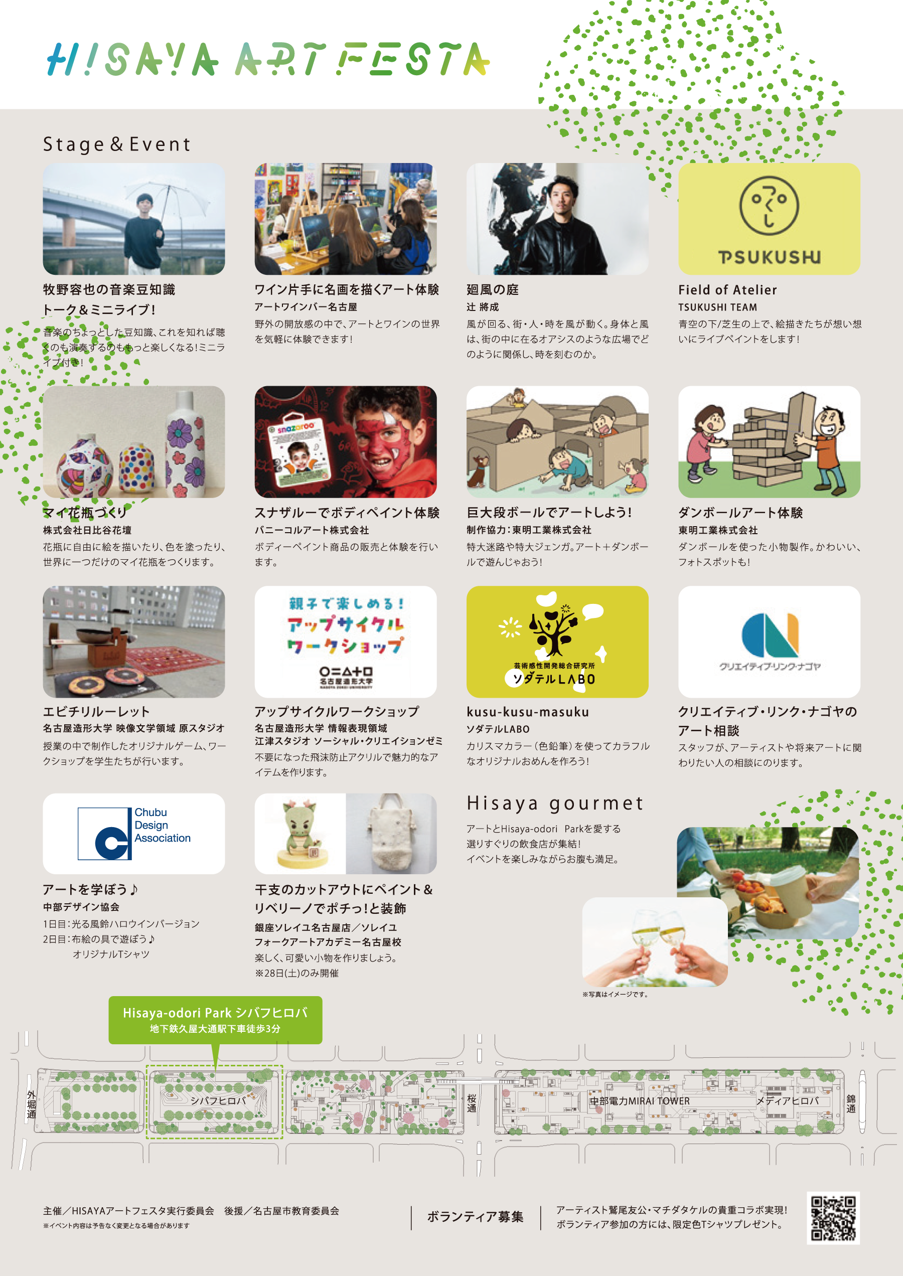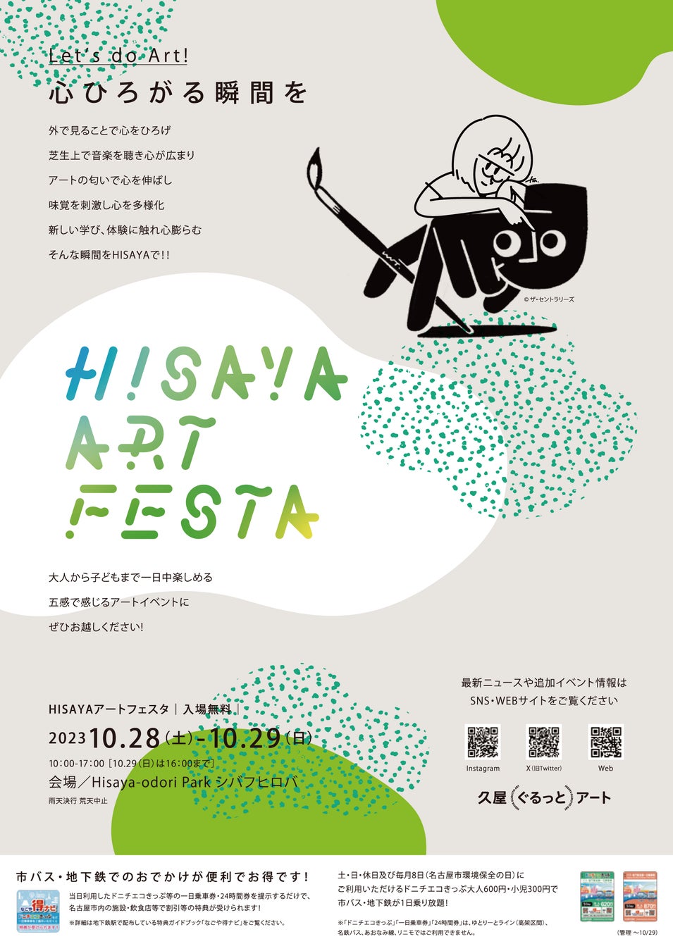2023年10月28日(土)・29日(日)の2日間、Hisaya-odori Park(久屋大通公園・愛知県名古屋市)シバフヒロバにて「HISAYAアートフェスタ」が開催されます。