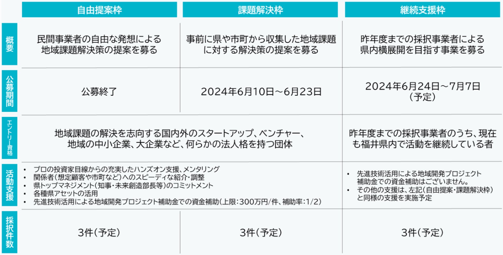 より詳細なプログラムの概要や過去の採択プロジェクト等についてはWebサイト(https://co-fukui.jp/)をご覧下さい。