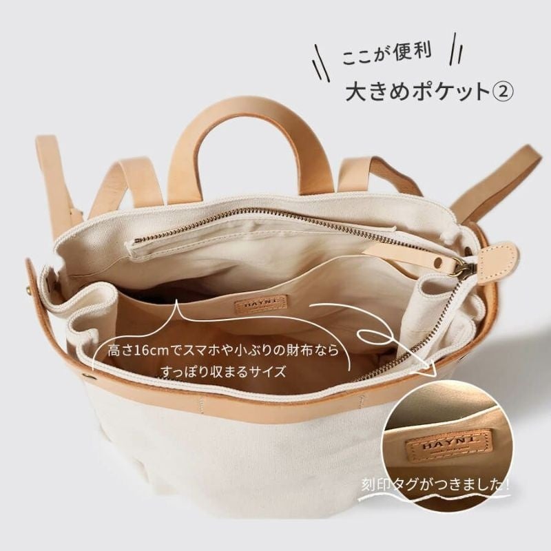 国産6号帆布のキャンバス生地は、見た目にも上品で美しく、手触りもなめらか。