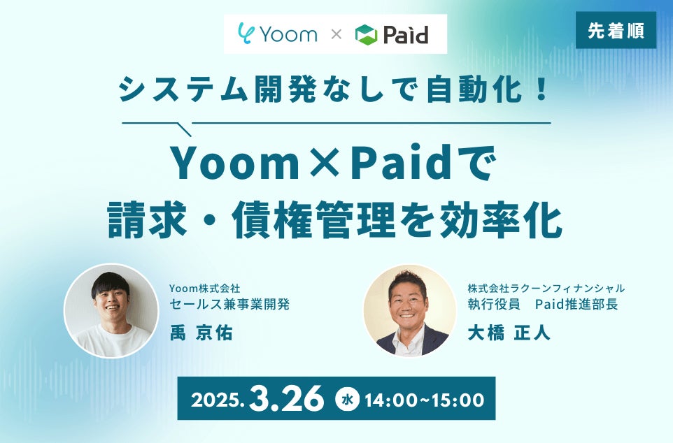 3/26(水)14:00~ Yoom×Paidで請求・債権管理を効率化 (要申込・先着順)