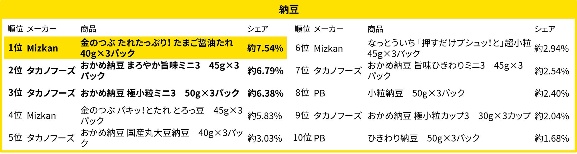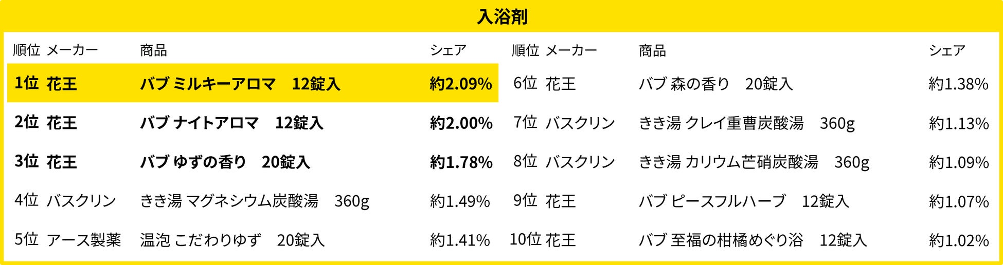 冷凍食品では「餃子」が1位を獲得したほか、お弁当のおかずとして重宝される「小さなおかず」が5位、6位、7位、8位、10位にランクインしました。入浴剤では「炭酸入浴剤」が1位から10位を独占し、その中でも、気分にあわせて香りを選べる「錠剤タイプの香りアソート」が1位、2位、5位、9位、10位にランクインしました。お菓子では「スナック菓子」が人気を集め、アイスでは「モナカアイス」、菓子パン・調理パンでは「ロールパン」、納豆では「たまご醤油たれの極小粒納豆」がそれぞれ1位となり、2024年の消費トレンドが明らかとなりました。