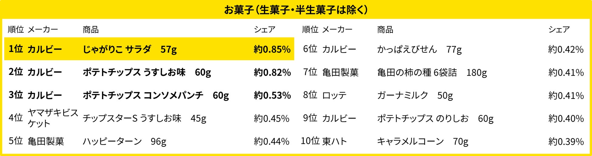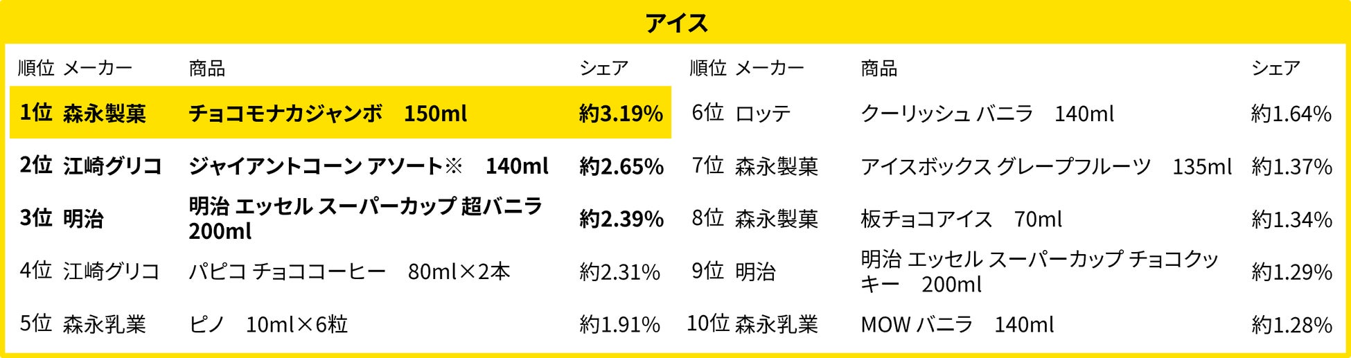 ※ジャイアントコーンのアソートは、チョコナッツ、クッキー&チョコ、チョコ&ミルクの総称。この3種類はJANコードが同じであり、シェアは3種類の合計値。