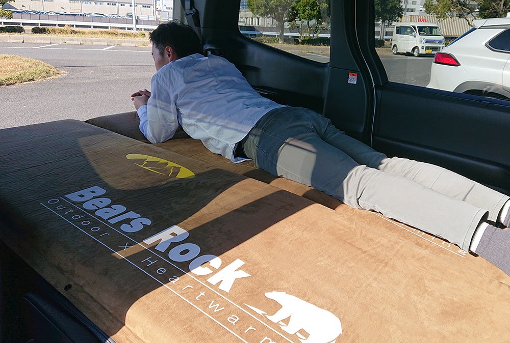 車中泊をする際に大切なのが寝床の段差を解消することです。座席を倒して寝るスペースをつくりますが、寝転んでみるとかなりデコボコしています。厚さ8cmある車中泊マットを使えば車内の段差はほぼ解消でき快適度が大幅に高まります。