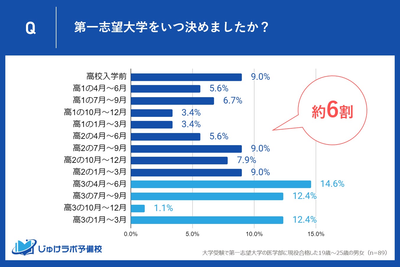 高校3年の春に志望大学を決める医学部受験生が14.6%と最も多い
