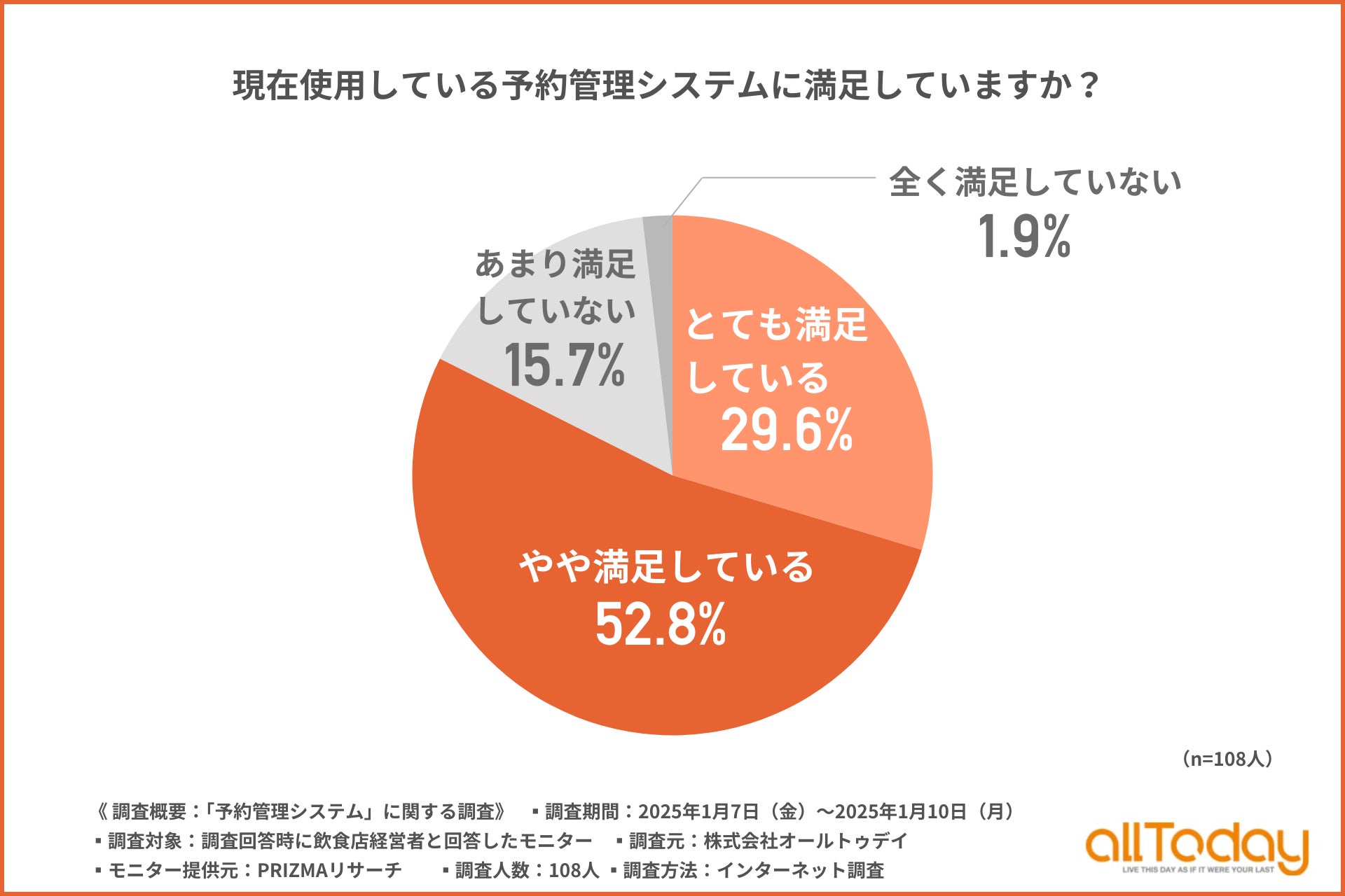 株式会社オールトゥデイ(本社所在地:埼玉県さいたま市)は、飲食店経営者を対象に、「予約管理システム」に関する調査を実施しましたので、その結果を公表します。