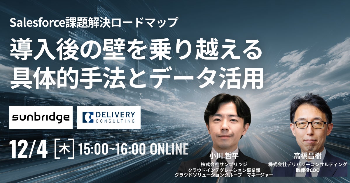 株式会社サンブリッジと共催WEBセミナー「Salesforce課題解決ロードマップ -導入後の壁を乗り越える具体的手法とデータ活用-」