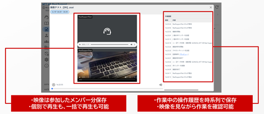 作業中の映像録画に加え、操作履歴も時系列で保存されます。これにより、研修素材や作業報告、さらには分析素材としても活用可能です。
