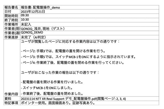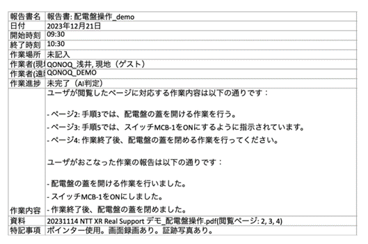 作業完了後に作業内容に応じて生成AIが自動的に報告書を作成します。製品版Real Supportへの導入は6月末を予定しています。