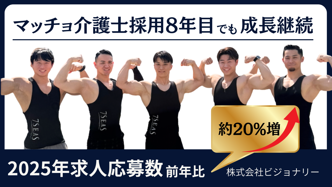“マッチョ×介護士“株式会社ビジョナリー 「マッチョ介護士」採用、8年目でも成長継続 2025年求人応募者数は前年比約20%増!