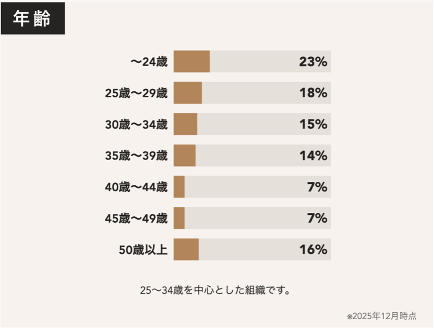 (※ビジョナリースタッフの年齢構成については、以下の図表をご参照ください)