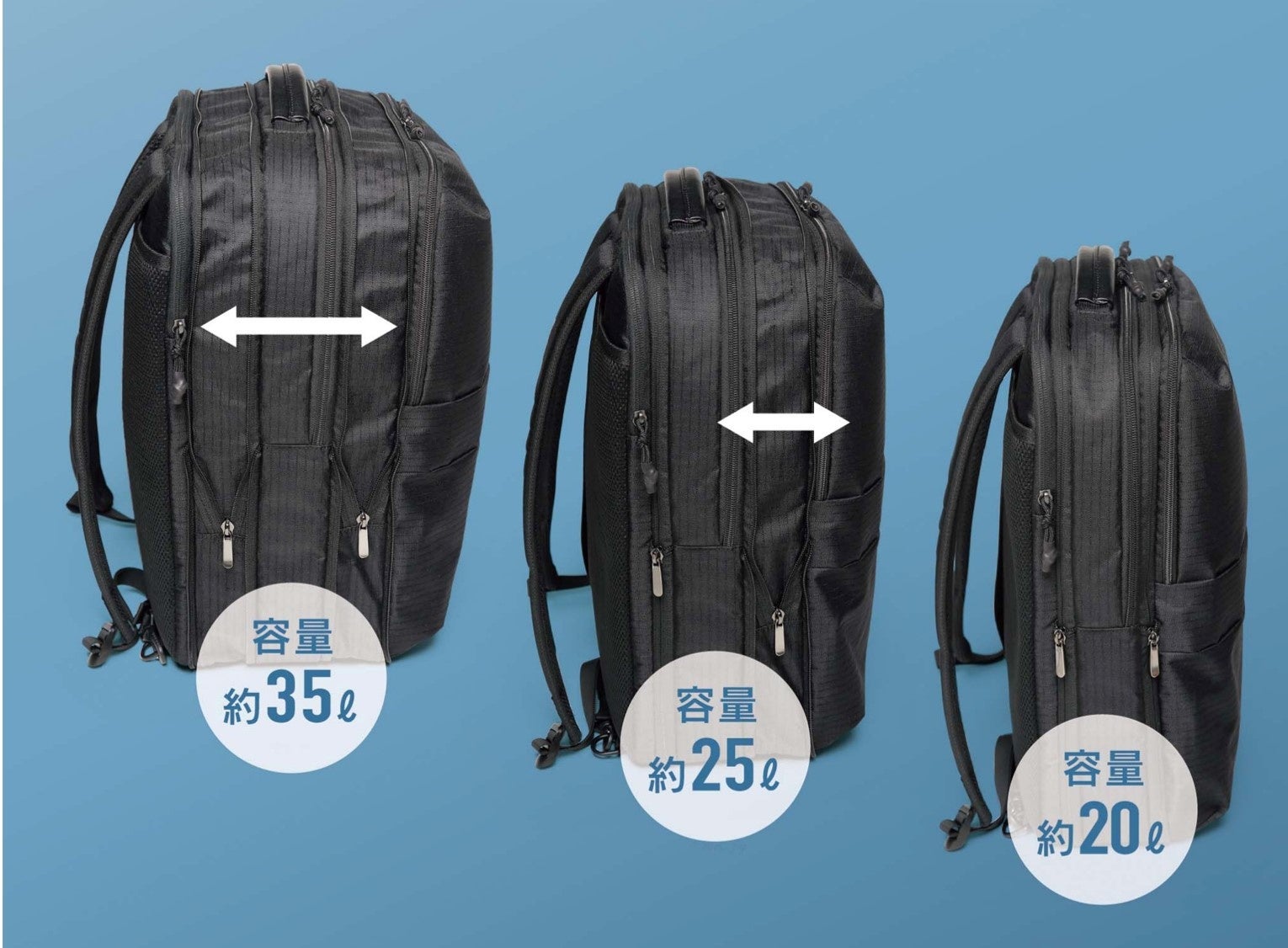 ※エキスパンダブル・・・奥行き(マチ幅)を拡張させるためのファスナーが取り付けられており、これを開くことで簡単に容量拡張ができます。