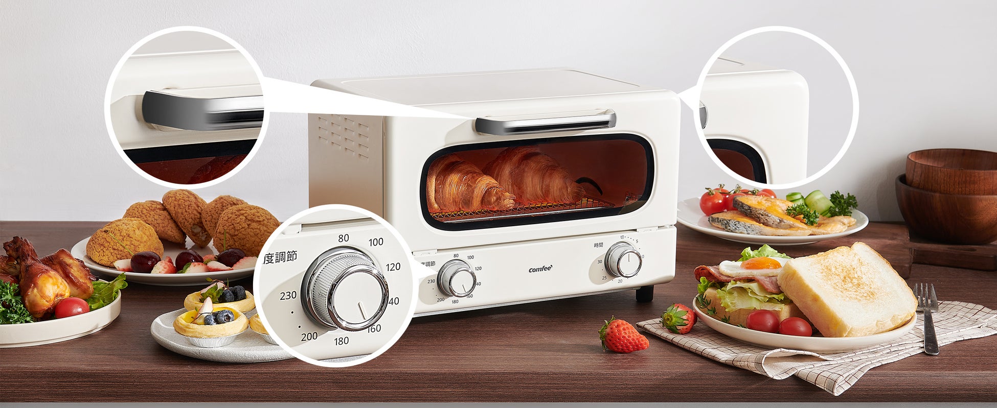 COMFEE'のレトロオーブントースターMG101は、そのレトロな外観と優雅なデザインが魅力です。シンプルながらも洗練されたデザインは、どんなキッチンにも自然に溶け込み、おしゃれな空間を演出します。