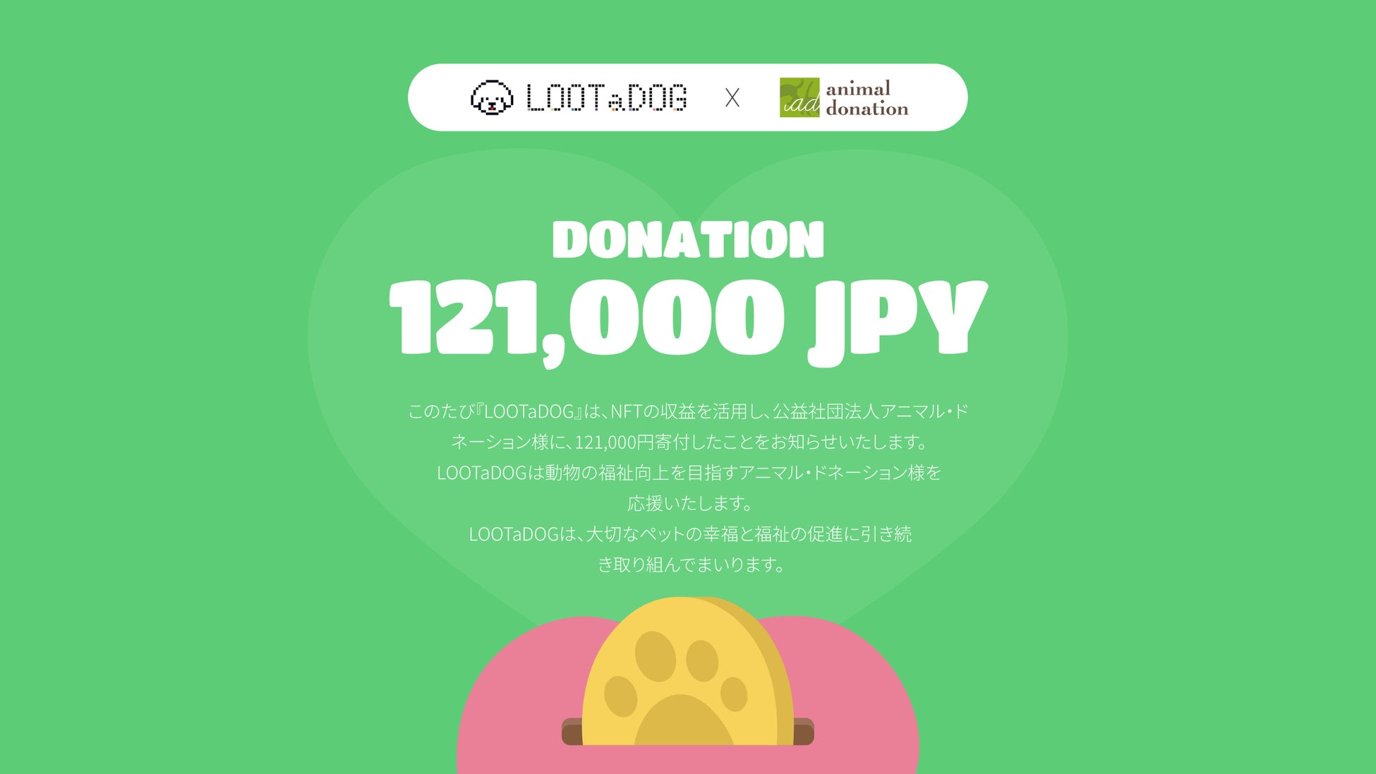 LOOTaDOGでは、今後もNFTやブロックチェーンを活用し、ペットと飼い主のウェルビーイング向上と新たなペット愛護の形を模索、開拓していきます。