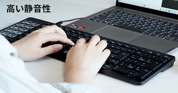 ・高い静音性や軽快な打鍵感を兼ね備え、長時間の作業でも疲れにくい