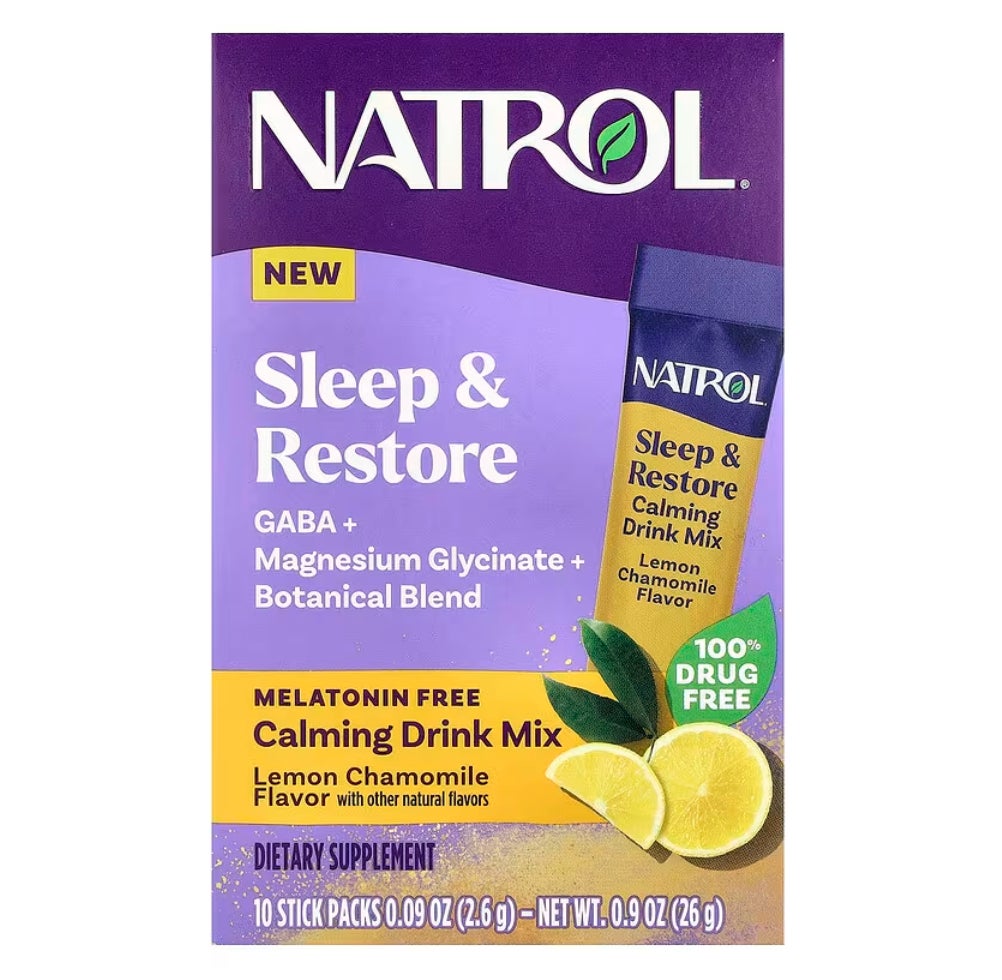Sleep&RestoreCalming Drink Mix、メラトニンフリー、レモンカモミール、スティックパック10本、各2.6g