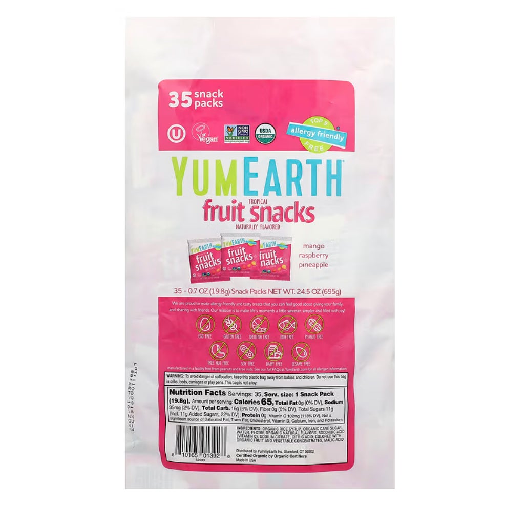 オーガニックフルーツスナック、トロピカル、スナックパック35袋、各19.8g