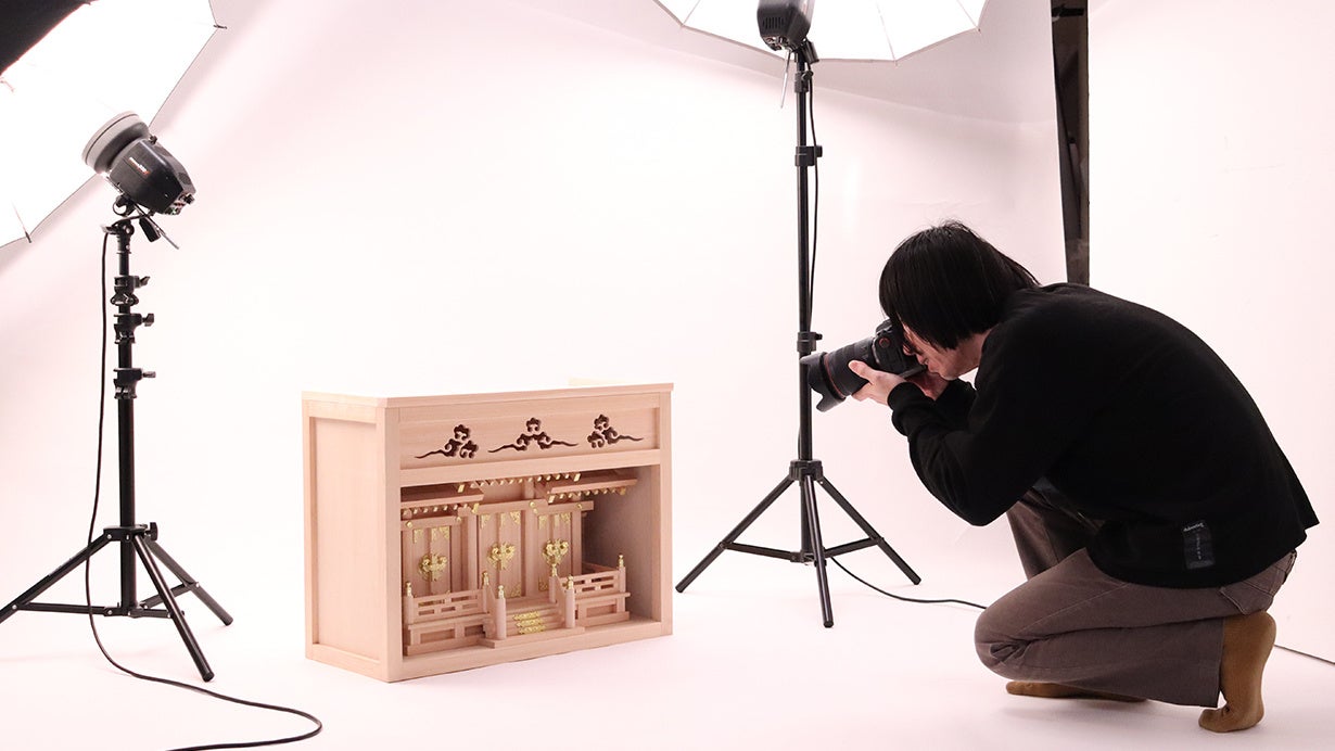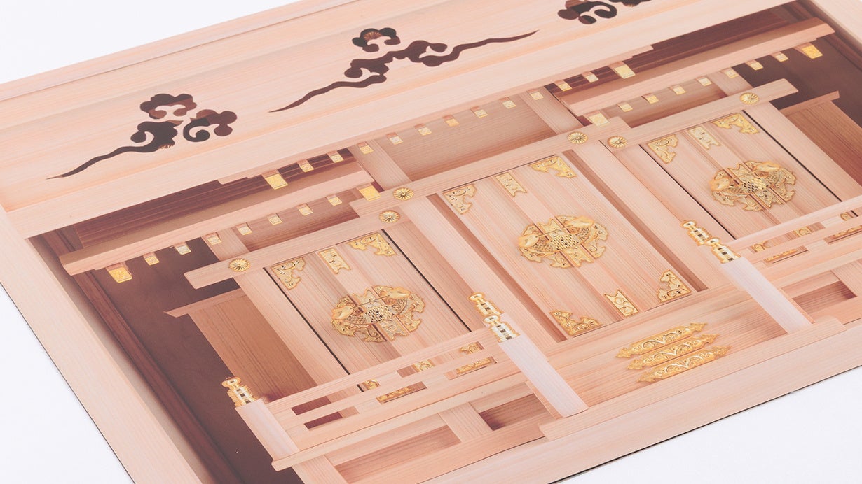 デザインは宮大工「大田工房」が手がけた神棚をもとに、神社建築の匠の監修を受けて製作。