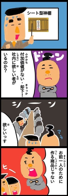 消えゆく神棚文化に新しい選択肢。『壁に貼れるシート型神棚』誕生までの88話を四コマ漫画で公開、Makuakeで48時間達成!