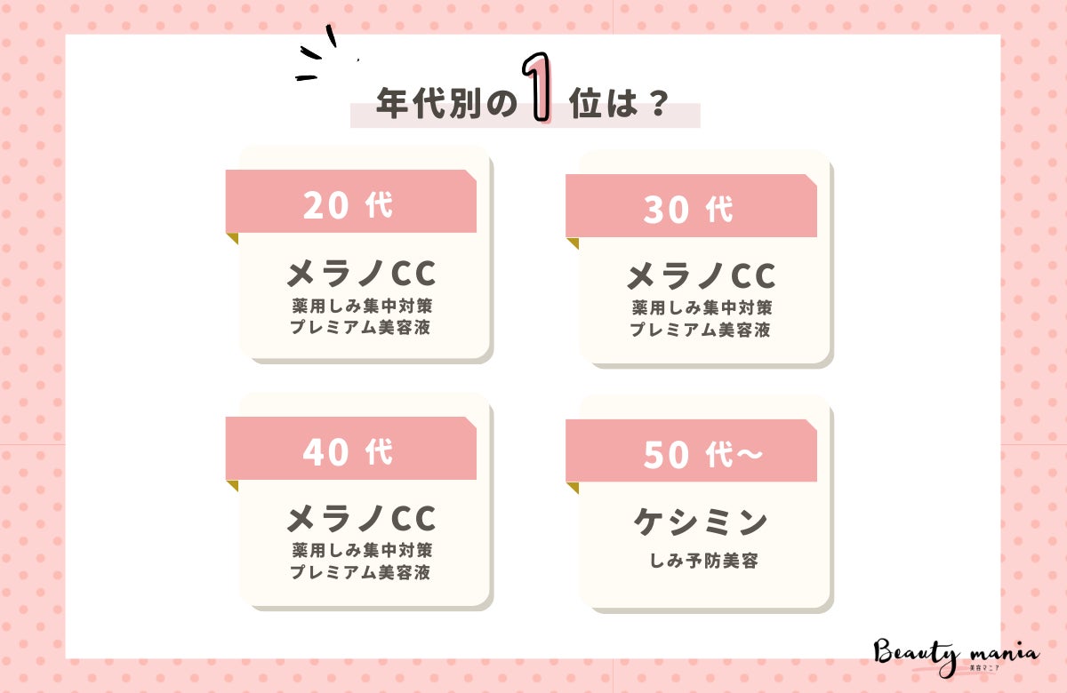 40代の1位『メラノCC 薬用しみ集中対策プレミアム美容液』(52.0%)