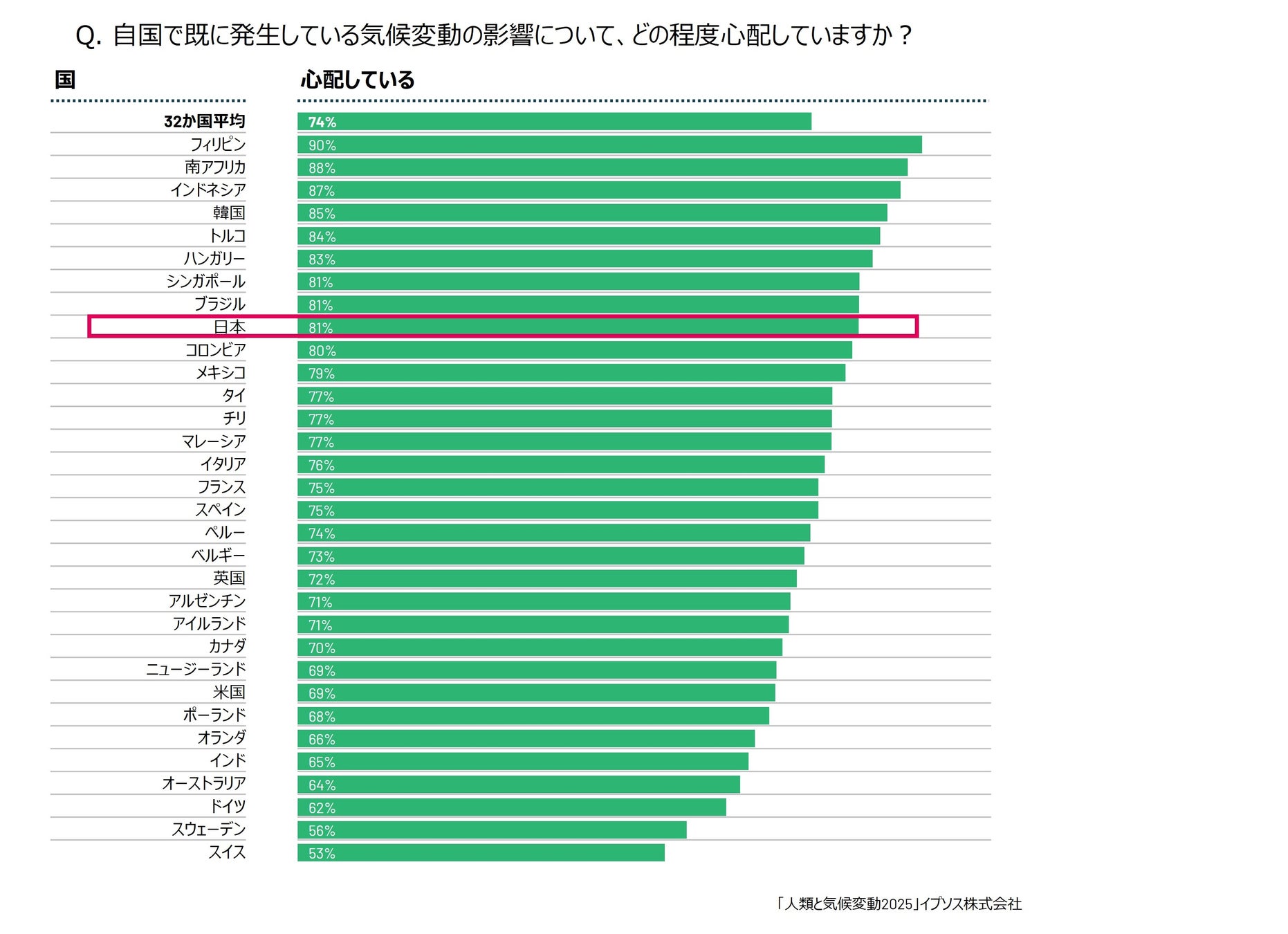 日本で発生している気候変動の影響を懸念している日本人は81%、世界でも懸念は高まっている