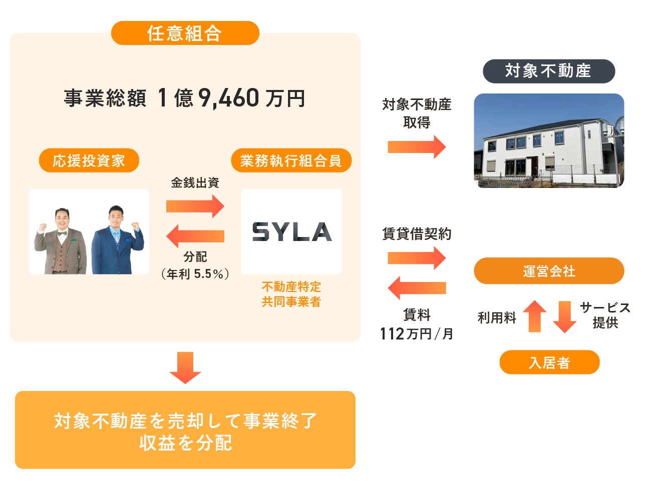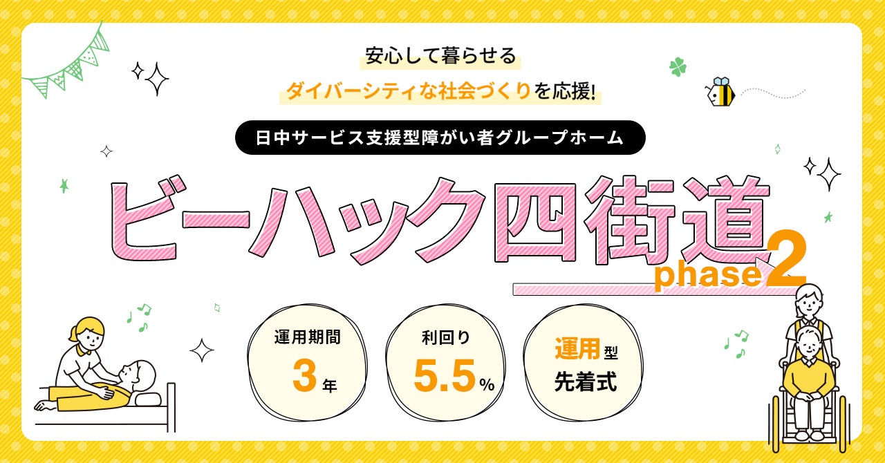 株式会社シーラテクノロジーズ(代表取締役会長:杉本 宏之、NASDAQコード:「SYT」)の完全子会社である、株式会社シーラ(本社:東京都渋谷区、代表取締役CEO:湯藤 善行)は、株式会社アニスピホールディングス(本社:東京都千代田区、代表取締役会長:藤田 英明、以下「アニスピホールディングス」)が手掛ける日中サービス支援型障がい者グループホーム事業『ビーハック四街道』のインカム型ファンド募集を4月2日(火)より募集開始いたします。募集金額は1億9,460万円、想定利回りは5.5%を予定しています。