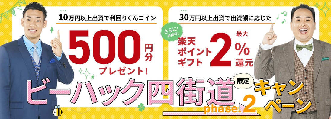 10万円以上の出資で、利回りくんコイン500円分プレゼント!