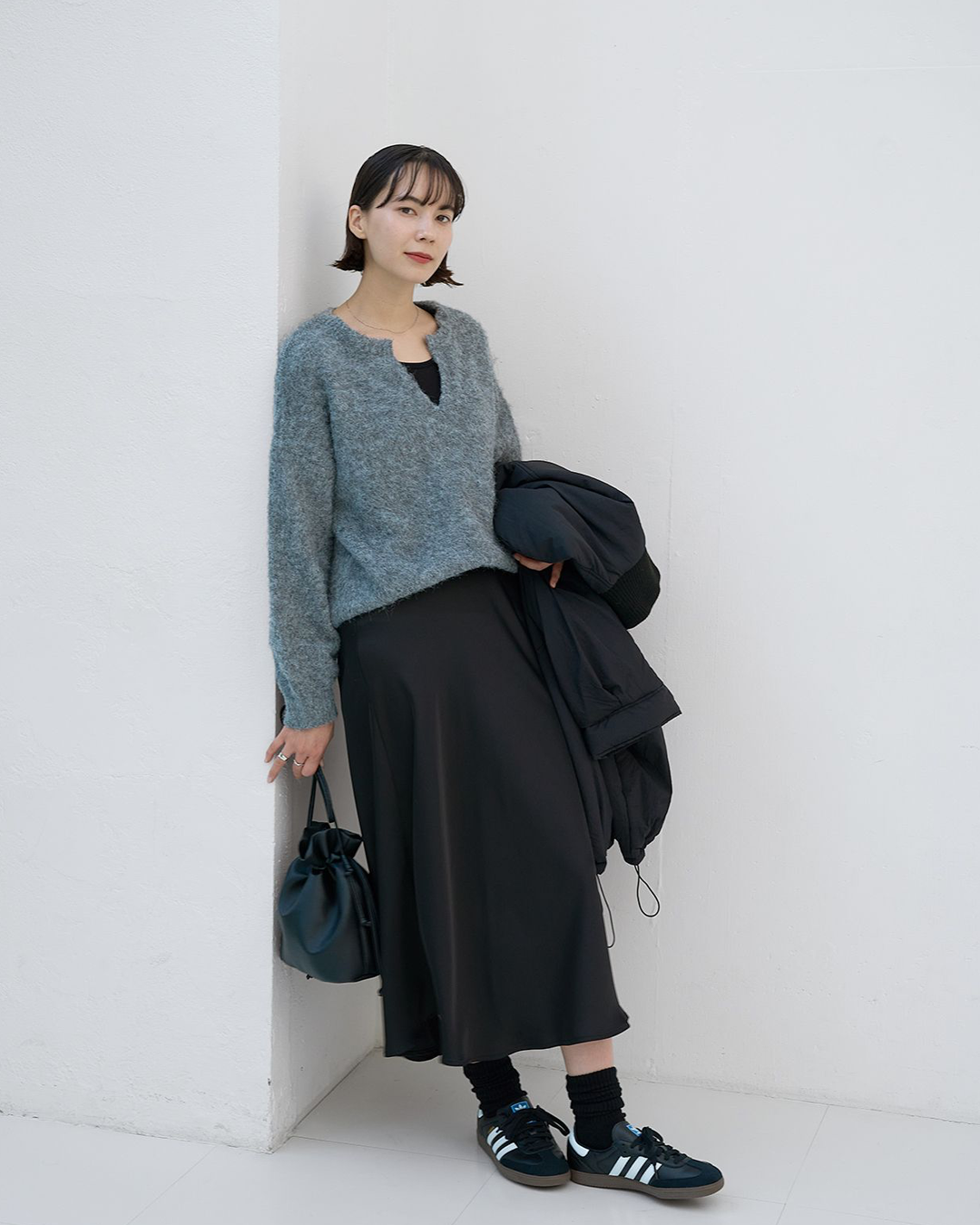 着た瞬間からじんわりとあたたかく包み込みます。薄く軽い生地ながらもしっかり暖かく、寒い季節も快適に過ごせる1枚です。