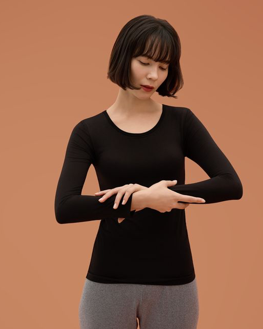 今回発売する『バンビウォーター ブライン スーパーヒート インナー クルーネック』は、ブラトップとして1枚で着られる快適さだけでなく、ナイトブラのような高いホールド力を実現しました。