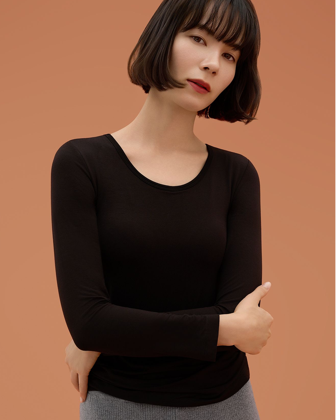 新たに吸湿発熱素材を採用することで、薄くて軽いのにしっかり暖かい、理想のあたたかインナーを実現しました。