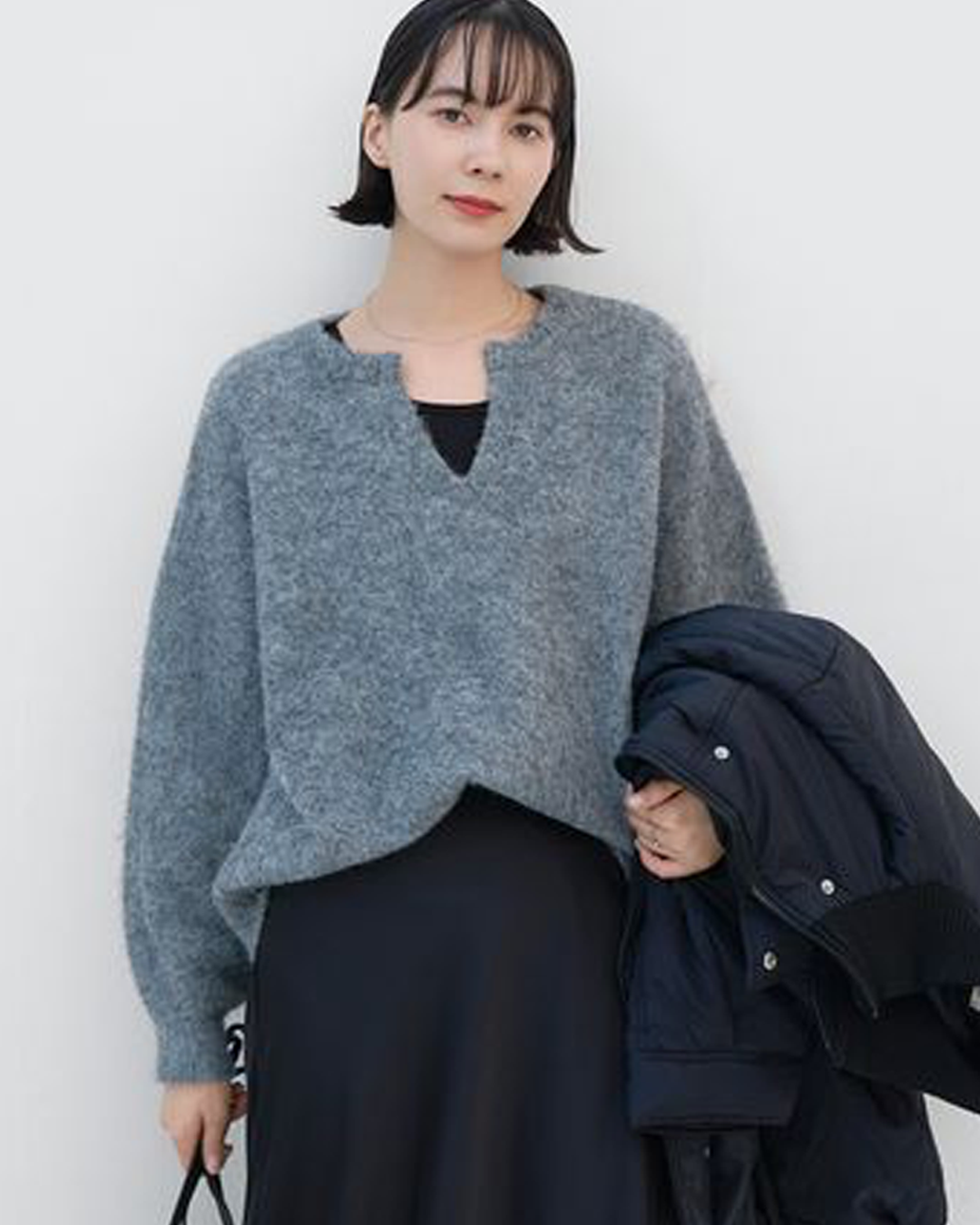 どんなシーンでも使いやすいクルーネックで首元まであたたかい。
