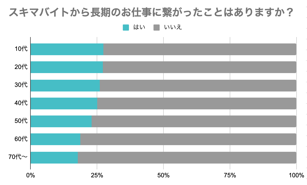 『シェアフル』アプリをインストールしているユーザーを対象に、「シェアフルmembers」を使用したアンケートを実施しました。「スキマバイトから長期のお仕事に繋がったことはありますか?」の質問でアンケートを実施しました。