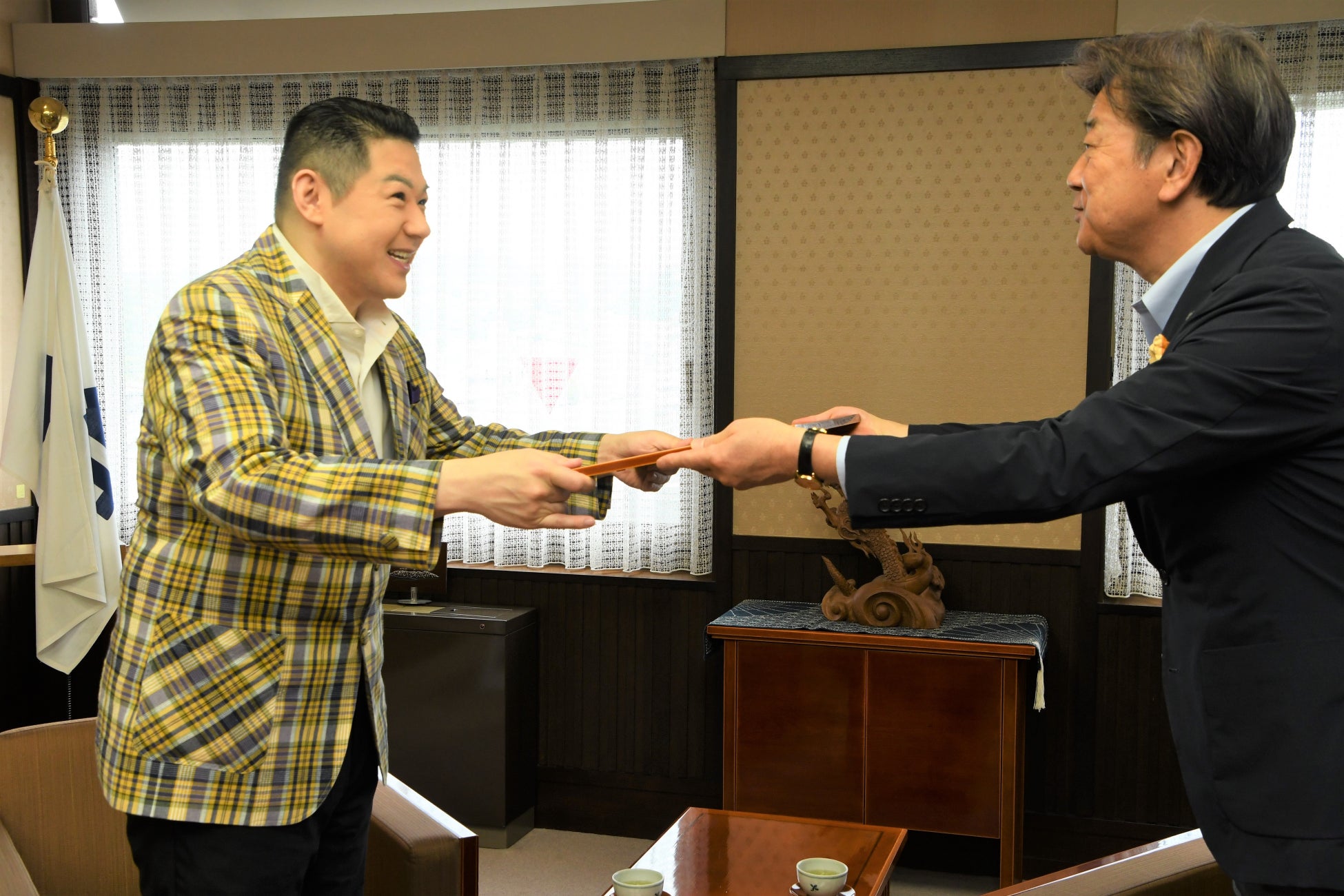 【岐阜県高山市】演歌歌手の大江裕さんが高山市長を表敬訪問