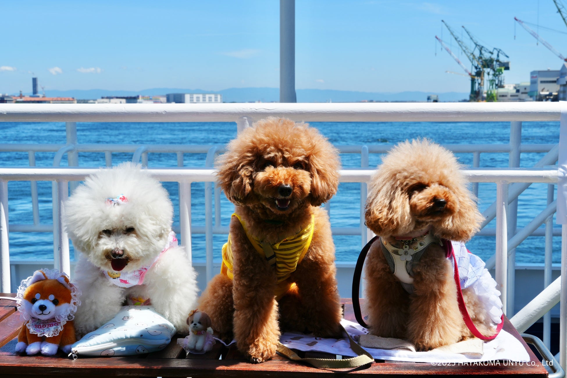 船上で愛犬と一緒に飛行機を見ながら写真を一枚を撮り、他では体験できない非日常な空間でさらに神戸での船旅を楽しんでください!