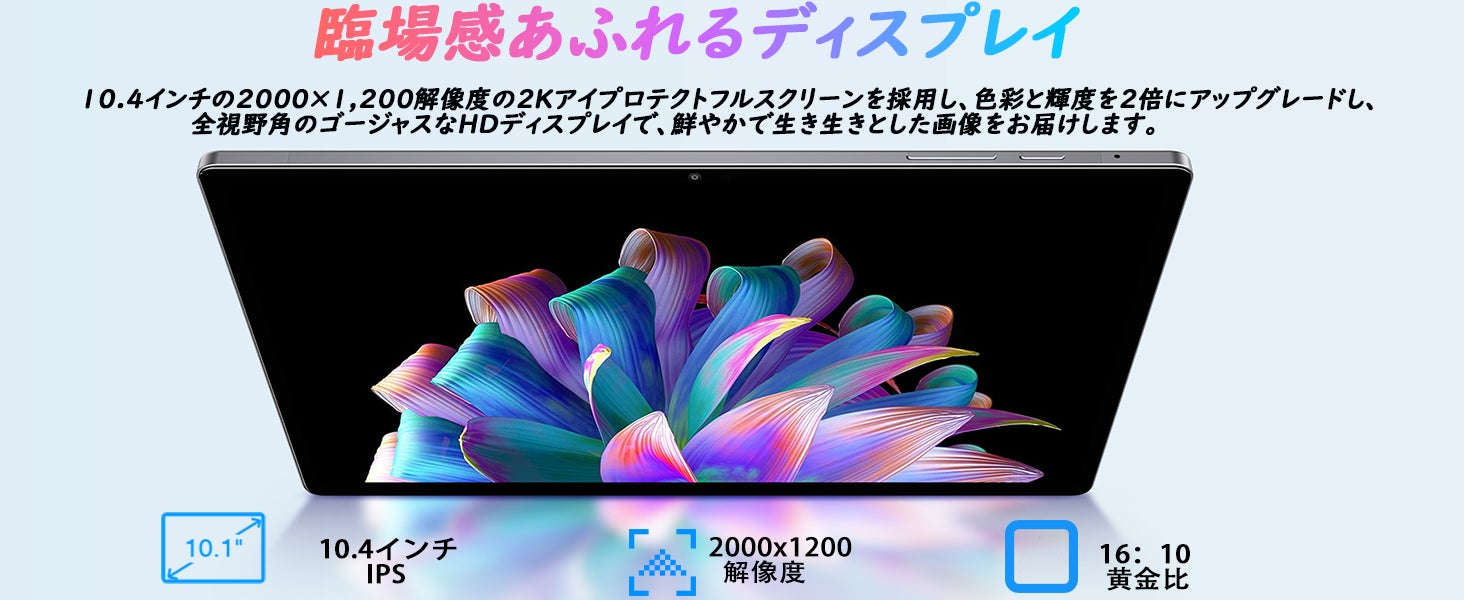 10.4インチ / Android 13 / 15GB+128GB+1TB TF拡張 /2K FHD IPSインセルディスプレイ /4G LTE / Widevine L1対応 / GPS機能サポート