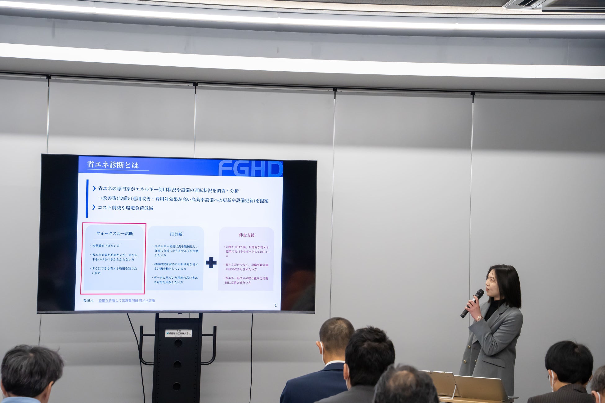 続いて、富士商株式会社からは、省エネを“現場目線”で捉えた実践的な取り組みとして、「省エネ診断」について説明が行われました。