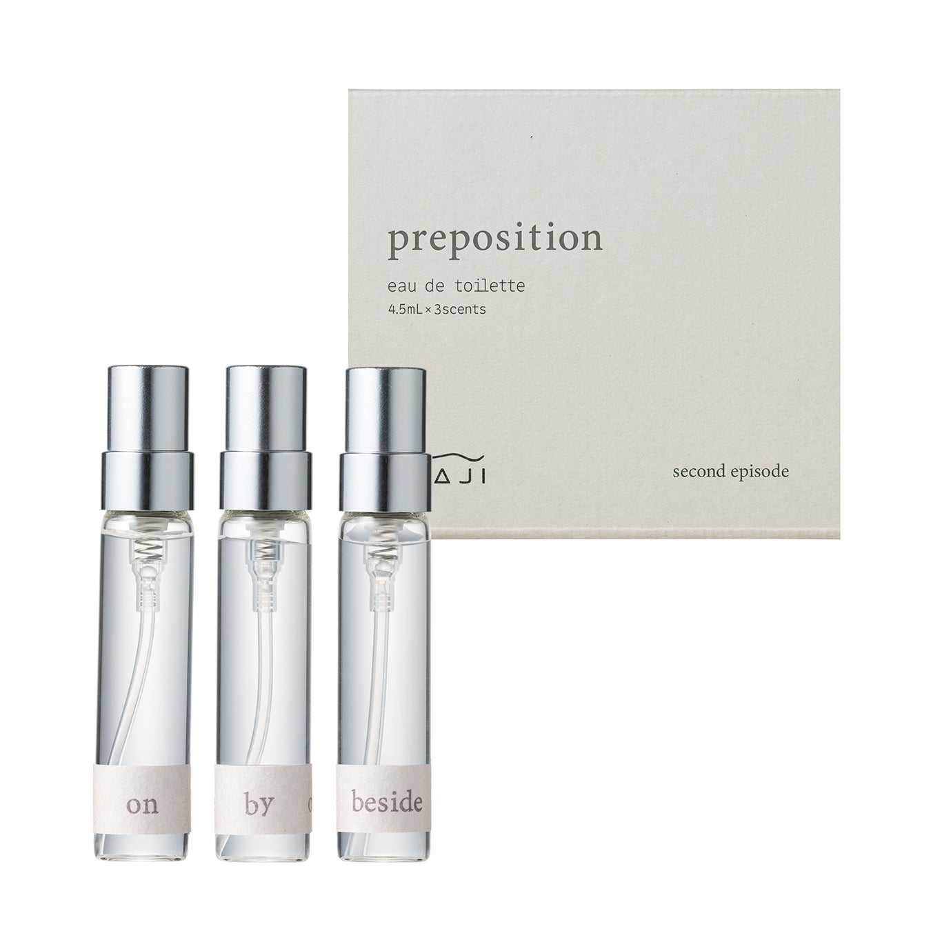 前置詞は時間や空間を切り取る言葉であり、香りは時間や空間の記憶とリンクするもの、という意図が込められています。