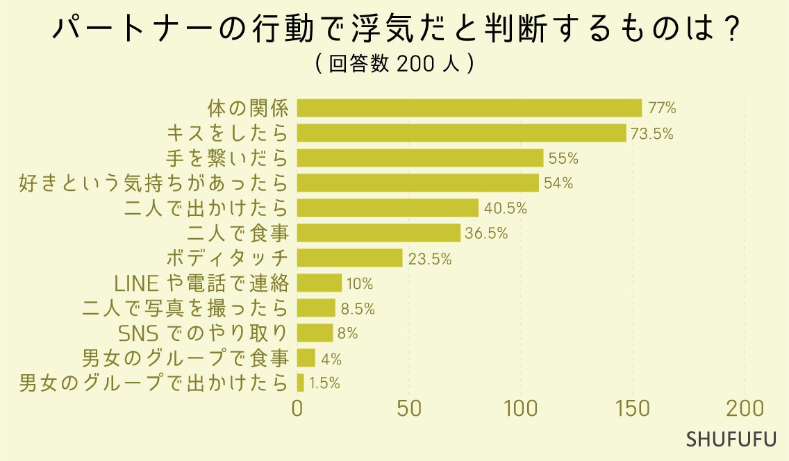 男性200人に「浮気」に関するアンケート調査を行った所、