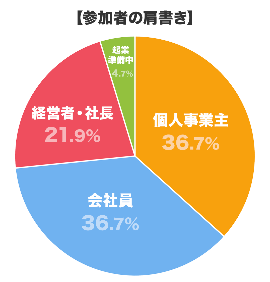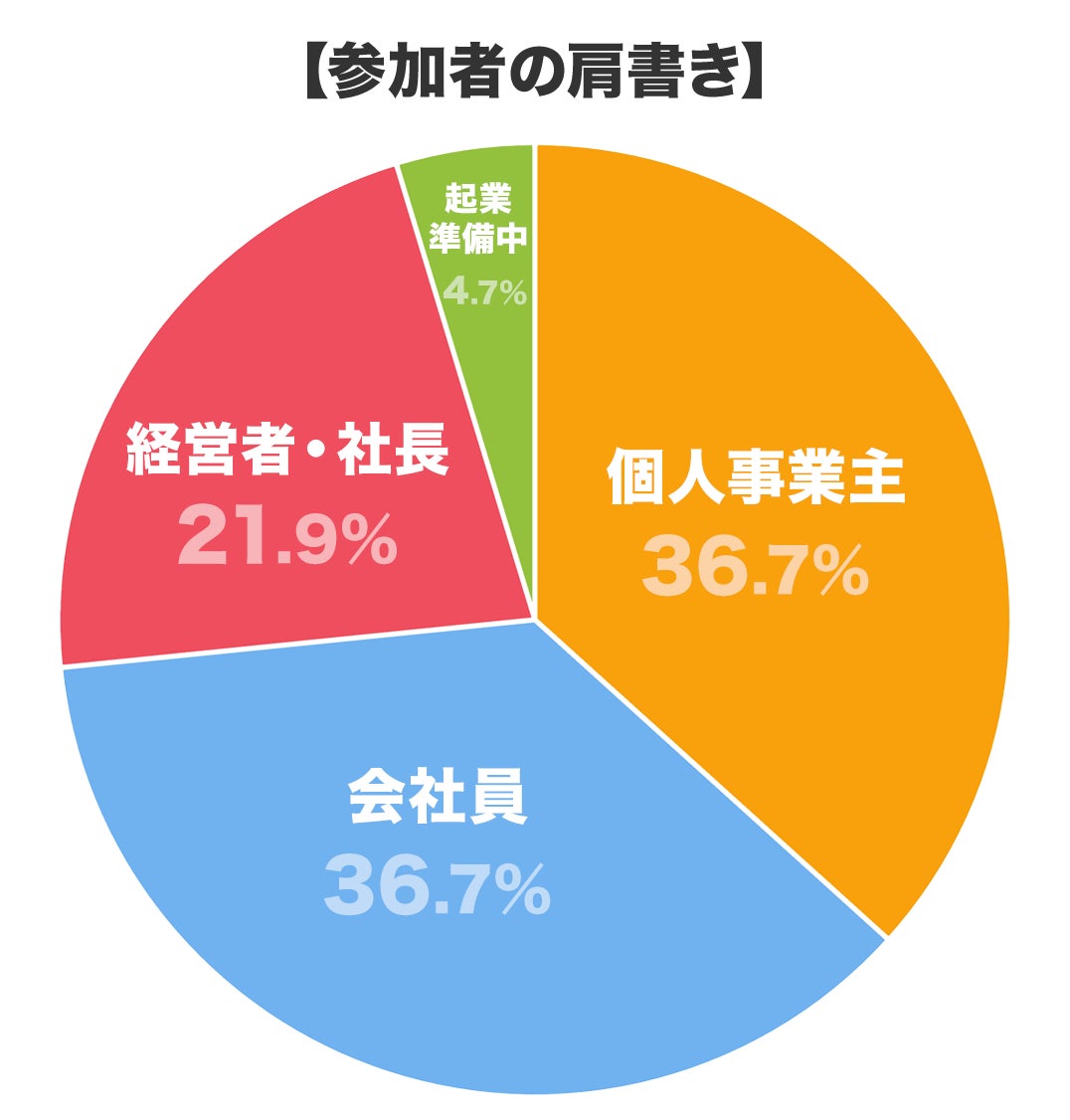 当イベントは過去に30回ほど開催されており、約6割の参加者がフリーランスや経営者などの事業主でした。