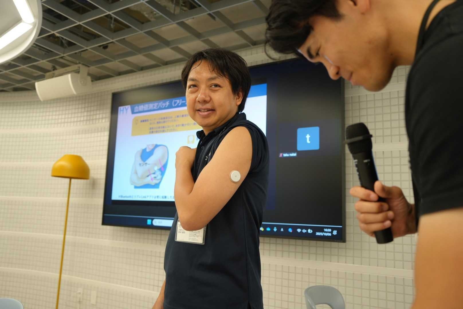 会場内にはLiSHの協力により実際の低酸素環境(標高3,000m相当)を再現した展示空間が設置され、参加者の血糖値変動をリアルタイムで計測するデモも行われました。