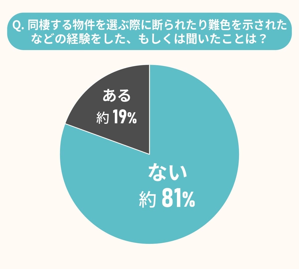 続いて、パートナーと同棲する物件を選ぶ際に断られたり、難色を示されたりなどの経験があるかどうか聞いてみました。