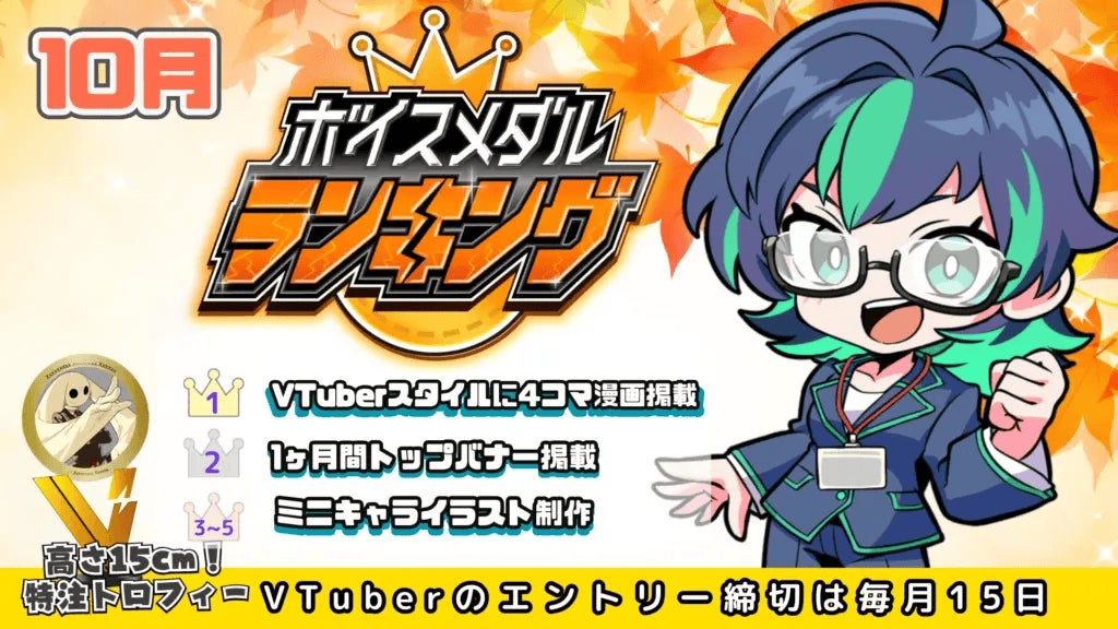 CrossVision、V-tampにおける10月度「ボイスメダル」販売数トップ5のVTuberランキングを発表