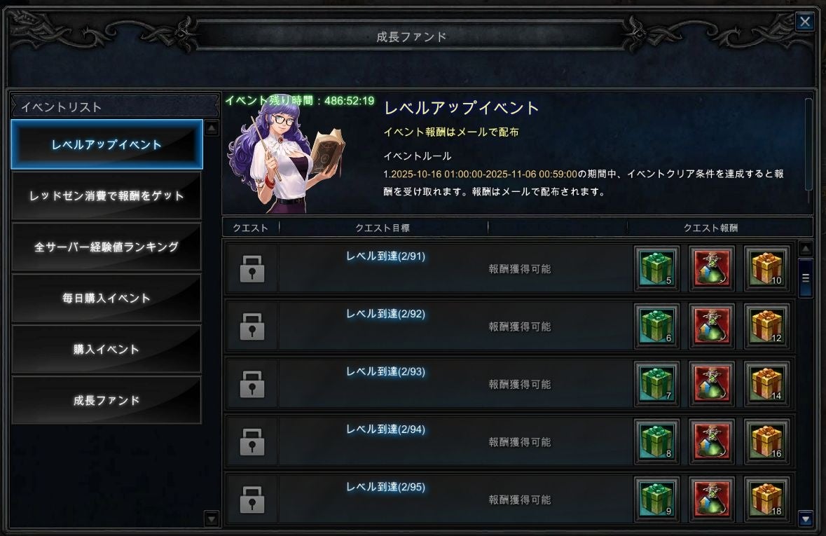 この他にも、本アップデートより、キャラクターレベルアップや経験値獲得ランキング、レッドゼン消費ランキングなど、多彩なイベントの期間限定開催に加え、「レベルアップパッケージ」などの新商品や「黄昏の宝石」などの限定アイテム(購入制限あり)の販売も実施しております。