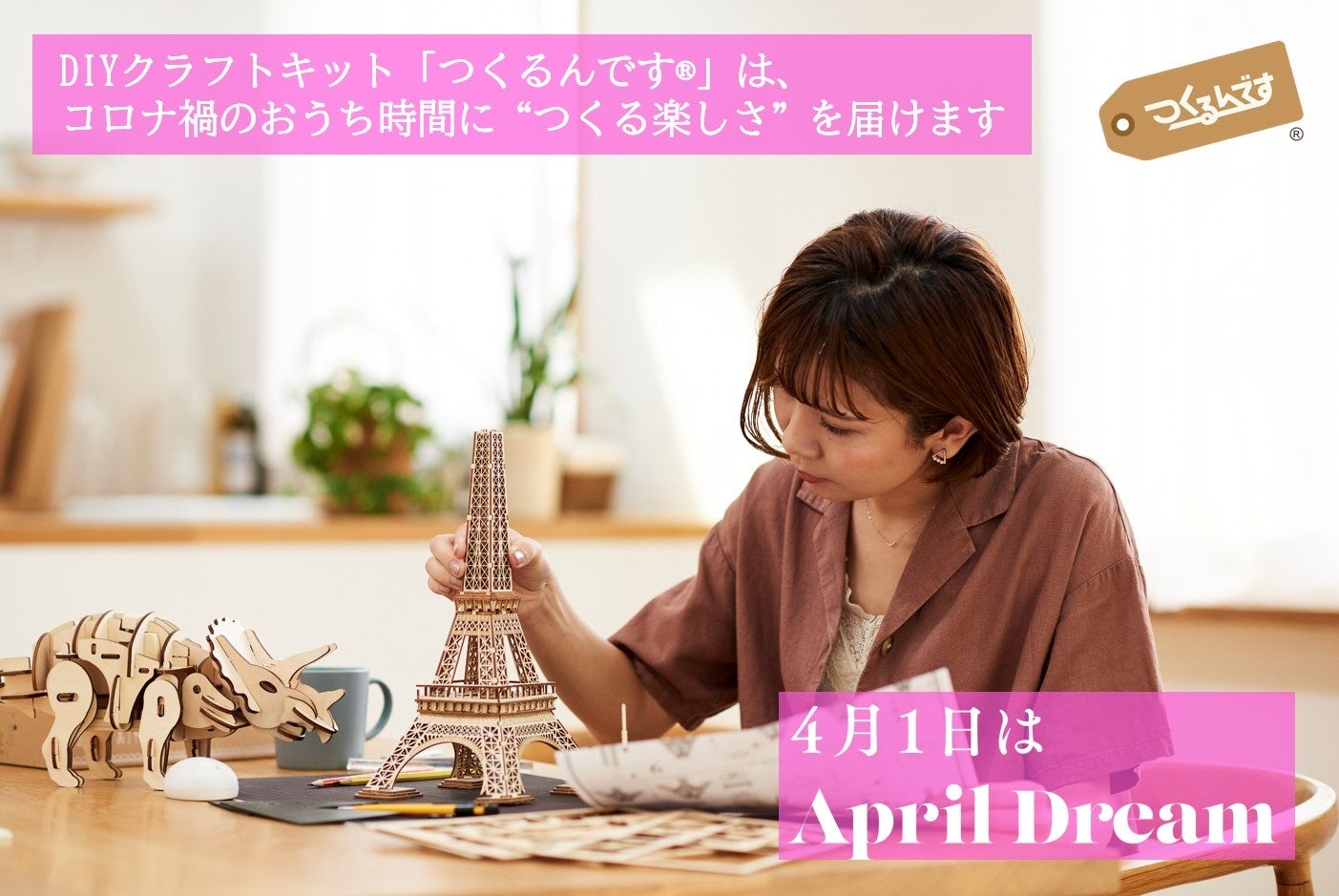 株式会社プラザクリエイト(本社:東京都中央区/代表取締役社長:大島 康広)が展開する、累計出荷数130万個突破のDIYクラフトキット「つくるんです®」は、コロナ禍のおうち時間に“つくる楽しさ”をより多くの人へ届けます。当社は、4月1日を夢を発信する日にしようとするApril Dreamに賛同しています。このプレスリリースは「株式会社プラザクリエイトが展開する“つくるんです®”」の夢です。