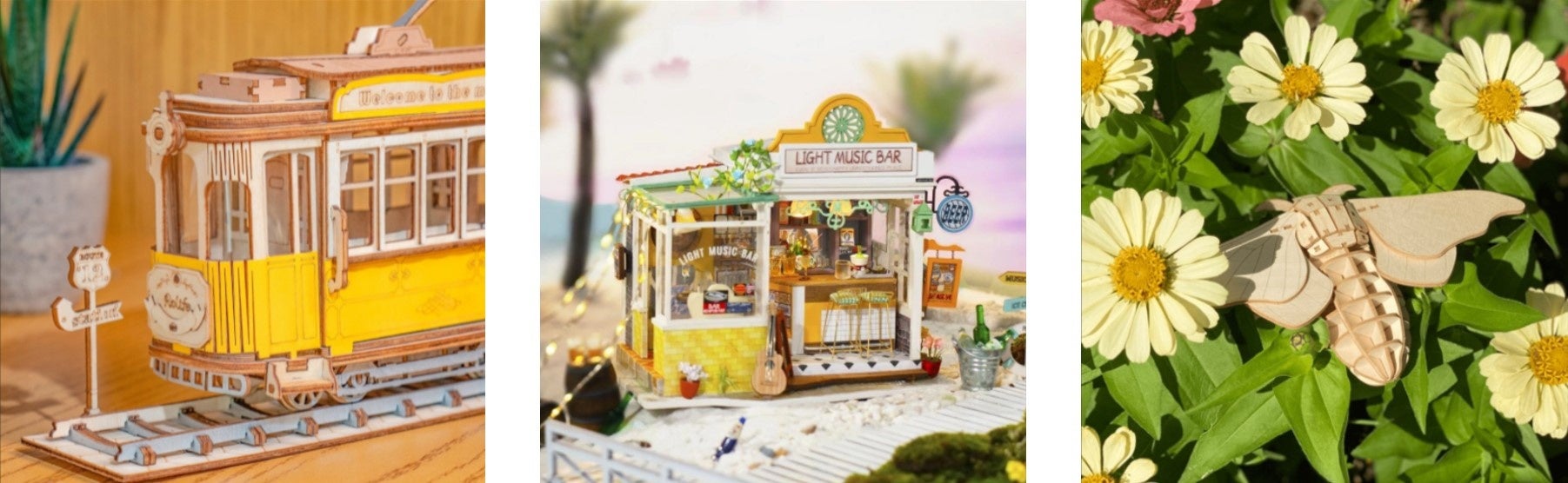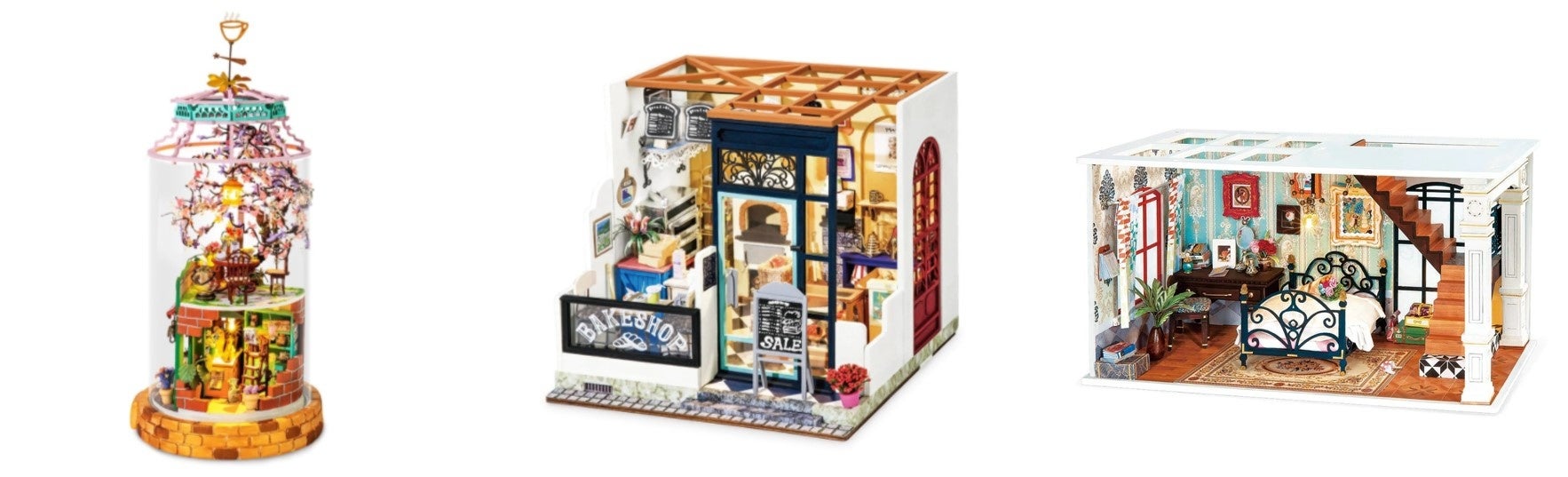 3Dウッドパズルは、絵具やマーカーなどで着色して、お好きにアレンジ。ミニチュアハウスは、レイアウトを変えたり、紙や布を貼り替えたりすることで、憧れの詰まった自分だけのおうちが完成します!