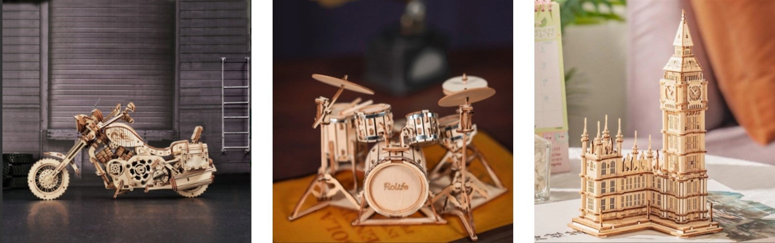 1-2時間程度で手軽に挑戦できるものから、24時間超えのものまでラインナップは様々!難しいものは、完成したときの喜びもひとしおで、一度つくるとまたつくりたくなる、クセになる難易度です。また完成後は、インテリアとしても楽しめるほどの精密なつくりも特徴的。
